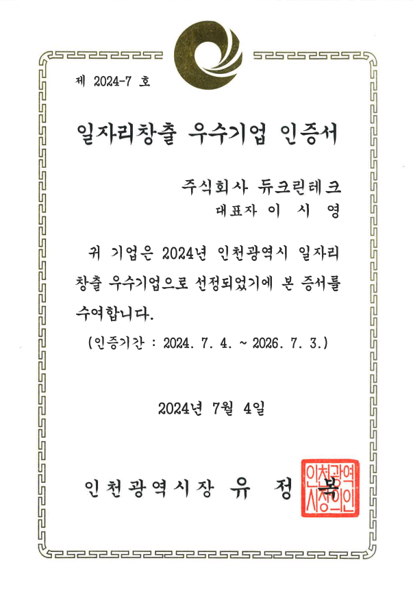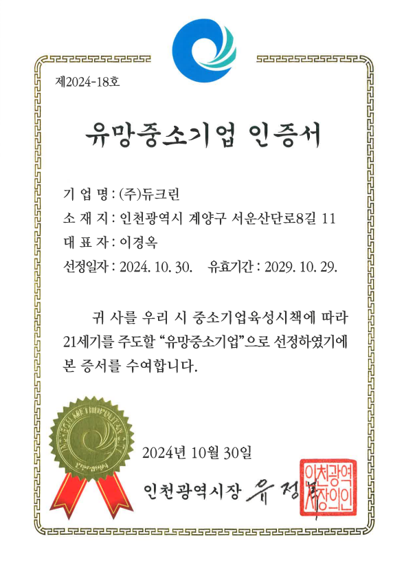인증용 제품 제작 시에는 사전 협의 바랍니다.